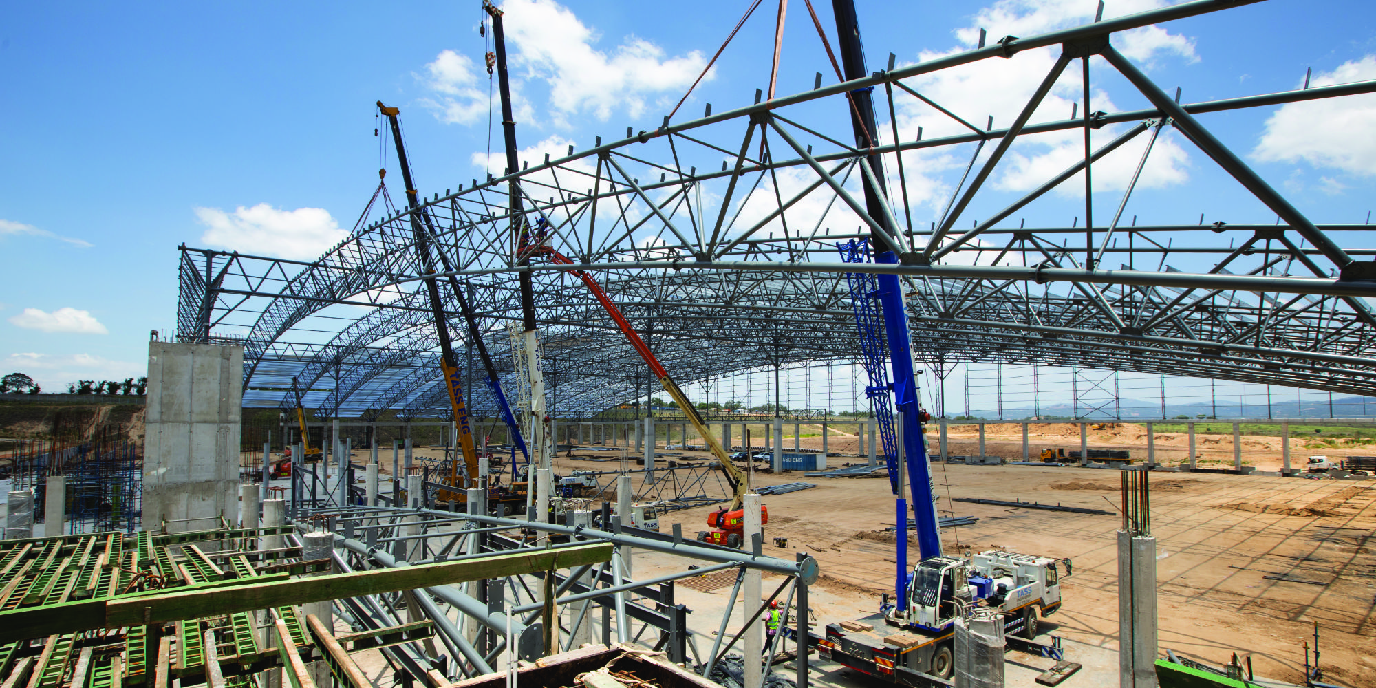 Also impressive is the fact that the engineer who designed the structure came up with a very elegant solution for the problem posed: the need for a lot of column-free space. To solve this, an arched roof was used along the entire 220 metre length – supported at each end using a structural framing system. The aesthetics and project execution – including the engineering, connections used, the seamlessness thereof and how the structure was erected – is quite amazing and a testament to the power of structural steel as a material of construction,” Gebremeskel comments.