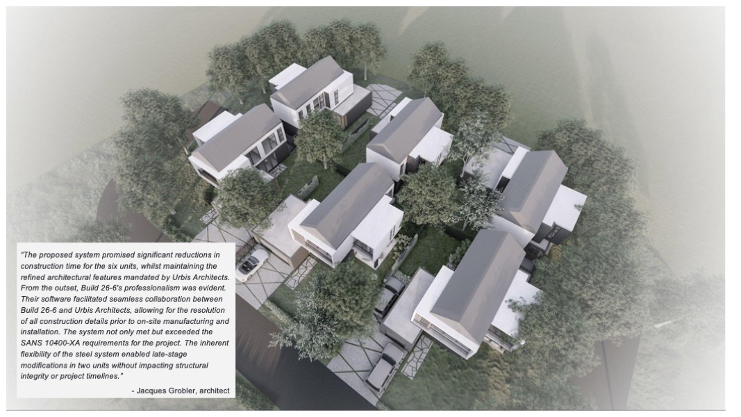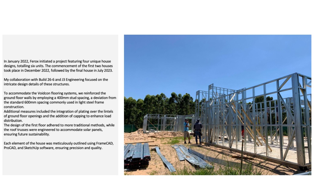 The Ferrox residential development utilised a light steel frame construction system to build six residential units efficiently and quickly. The prefabricated steel panels enabled rapid construction with high-quality finishes, exceeding insulation requirements and impressing the developer with the system's performance and market appeal.