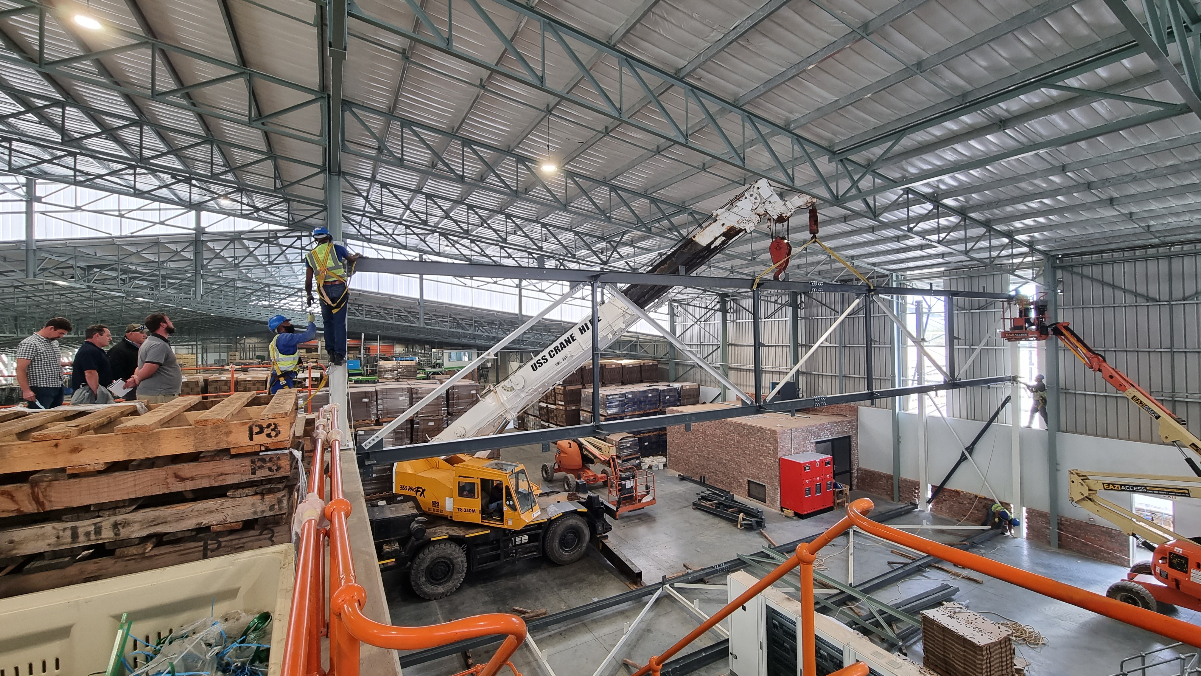 The Woodridge Packhouse project located in Addo in the Eastern Cape is an impressive feat of architectural and engineering design. The architect drew inspiration for the building's shape from the nets that cover citrus for protection against hail, birds, and insects. They aimed to create a skin over the rectangular form of the building, which allowed natural light to flood the interior while also embracing and celebrating the surrounding landscape. The project involved the construction of an aesthetically pleasing structural steel frame building with metal cladding. A total of 688 tons of steel was used, including a variety of profiles.