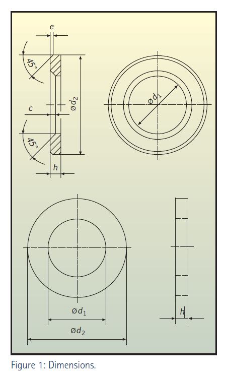 Parts 5 and 6: High-strength structural bolting assemblies for preloading: Plain washers and plain chamfered washers (Parts 5 and 6 are identical except part 6 has the dimensions for chamfered washers) (see figure 1 above).